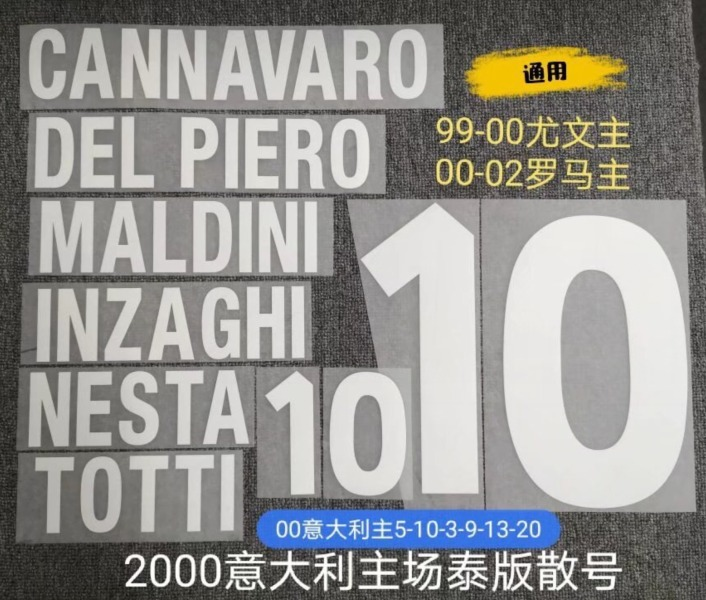 Italy 2000 Home football star TOTTI DEL PIERO MALDINI soccer number