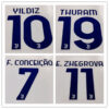 | A | F.CONCEICAO 7, KOOPMEINERS 8, VLAHOVIC 9, YILDIZ 10, E.ZHEGROVA 11, ADZIC 17, THURAM 19, JOAOMARIO 25, Customized Name Number |