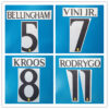 Real Madrid CF 2023/24 home BELLINGHAM ALABA KROOS RODRYGO VINI JR. soccer number